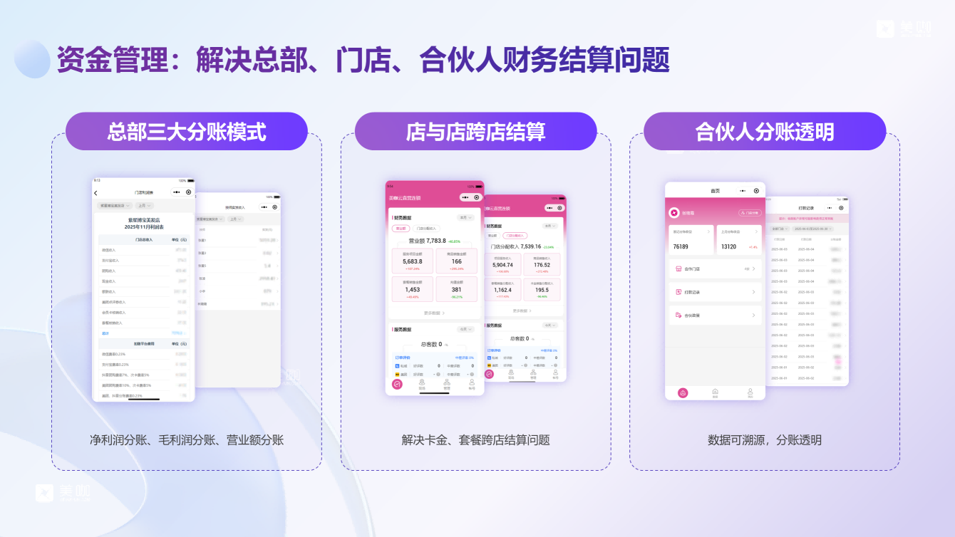核销与具体服务技师、工位绑定,杜绝私单;所有资金流水(含团购、储值)进入统一分账体系,保障总部资金管控与合规性,客户专线:13691809171。 |